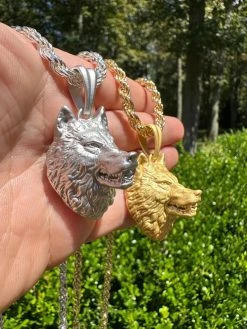 Real Solid 925 Sterling Silver / 14k Gold Wolf Head High Detailed Pendant Matte