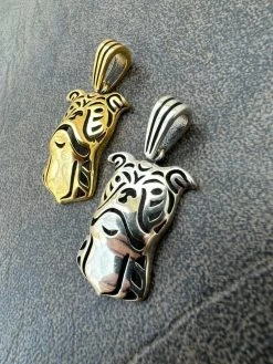 Real Solid 925 Sterling Silver / Gold Pit Bull Dog Cane Corso Pendant Necklace