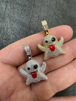 Real 925 Sterling Silver Gold Plated Snapchat Laughing Ghost Piece Pendant CZ