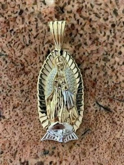 Men’s Real 14k Yellow Gold Over 925 Sterling Silver Virgin Mary Guadalupe Chain
