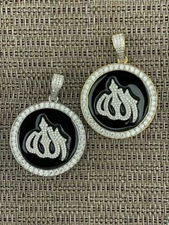 Solid 925 Silver Mens Large Allah Muslim Islamic Pendant Chain Iced Icy Hip Hop