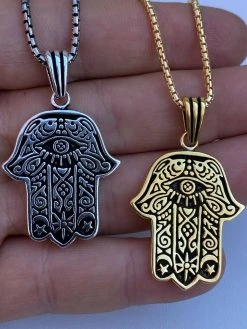 Solid 925 Sterling Silver Hamsa Hand Of Fatima Pendant Gold Necklace Large 1.75″