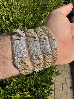 MOISSANITE Real Solid Miami Cuban Link Prong Bracelet Iced 14k Gold & 925 Silver