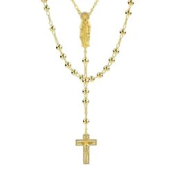 MOISSANITE Rosary Beads Necklace 14k Gold Vermeil 925 Silver Rosario Jesus 30″
