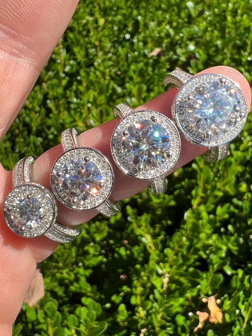 Large: 9mm center stone (3ct center stone)…with 0.7ct accent stones for 3.7ct TW