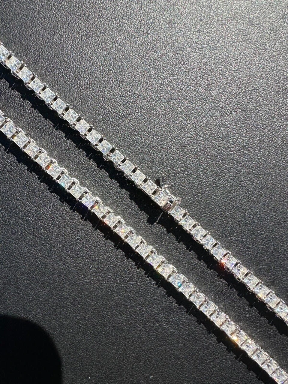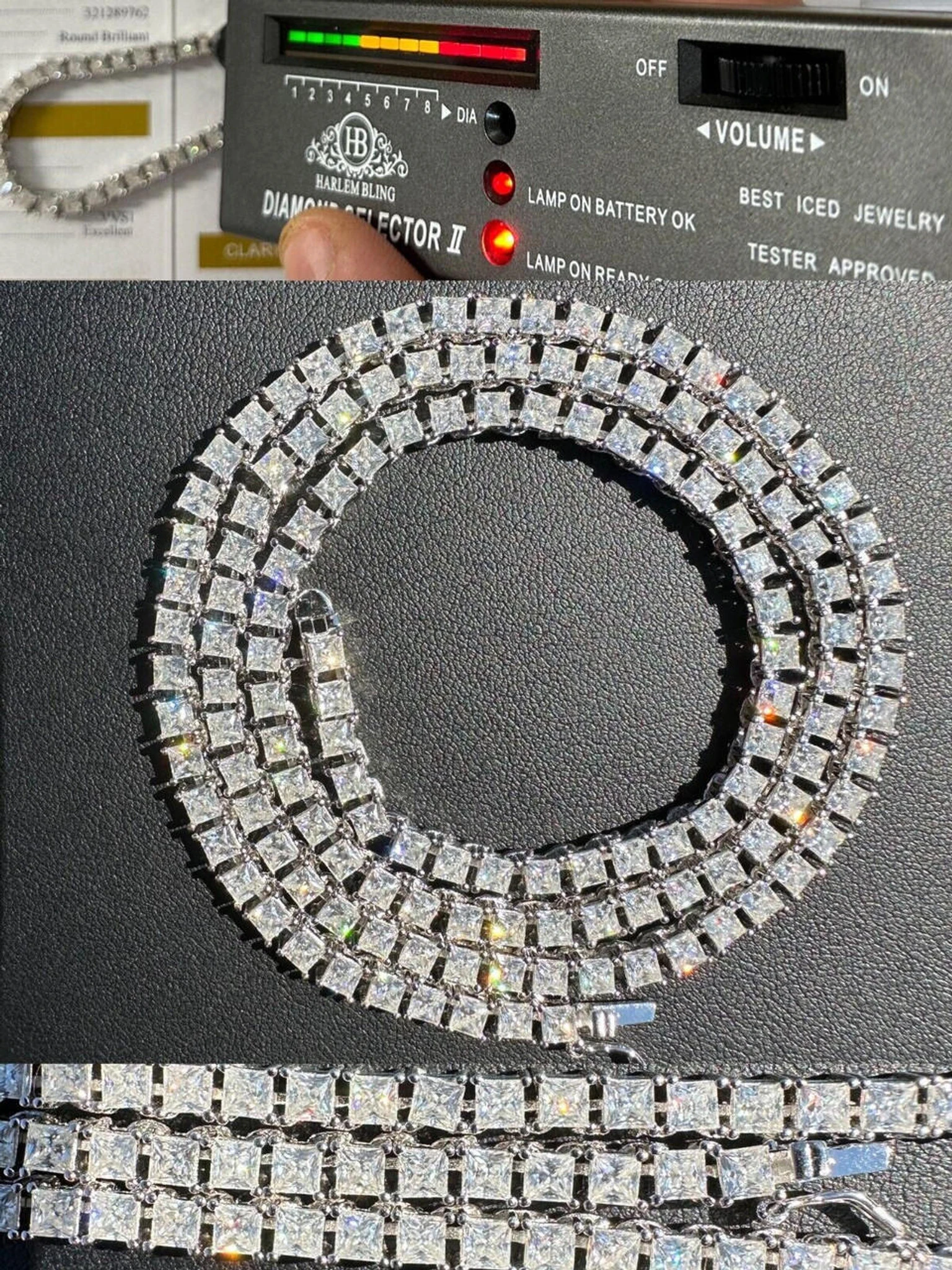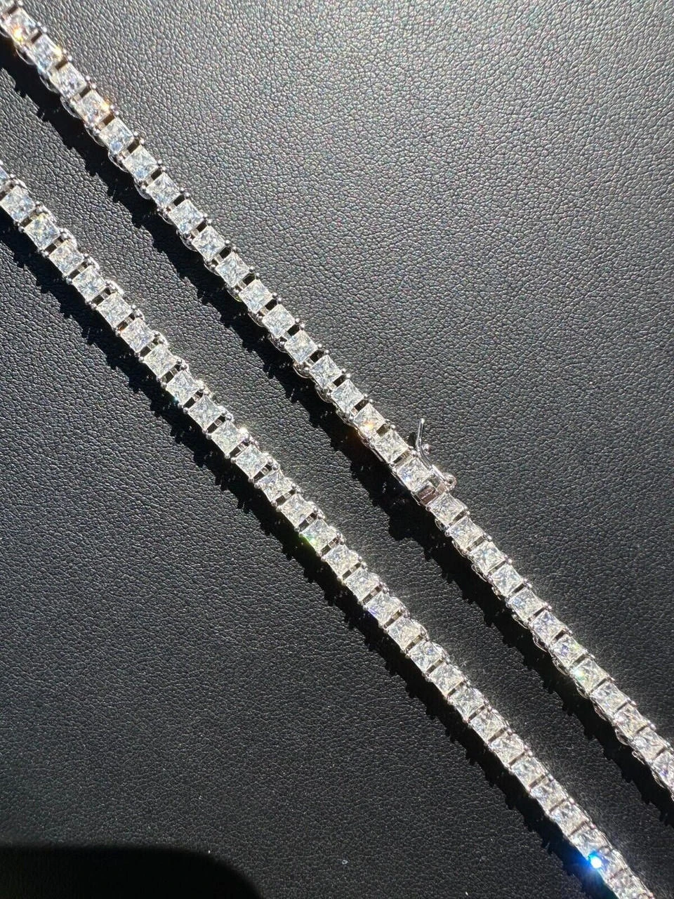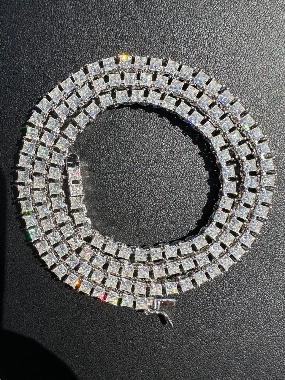 Gorgeous men’s or ladies MOISSANITE princess cut tennis chains. Princess cut is a square cut of stone.