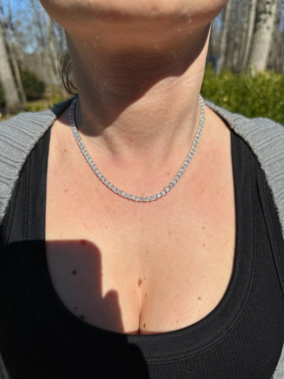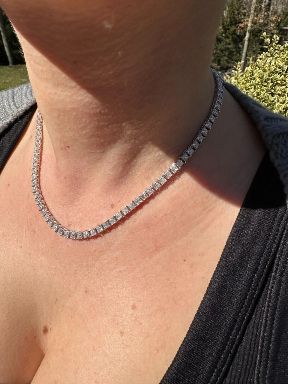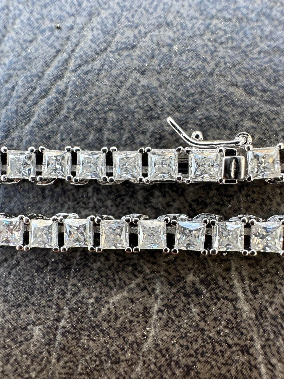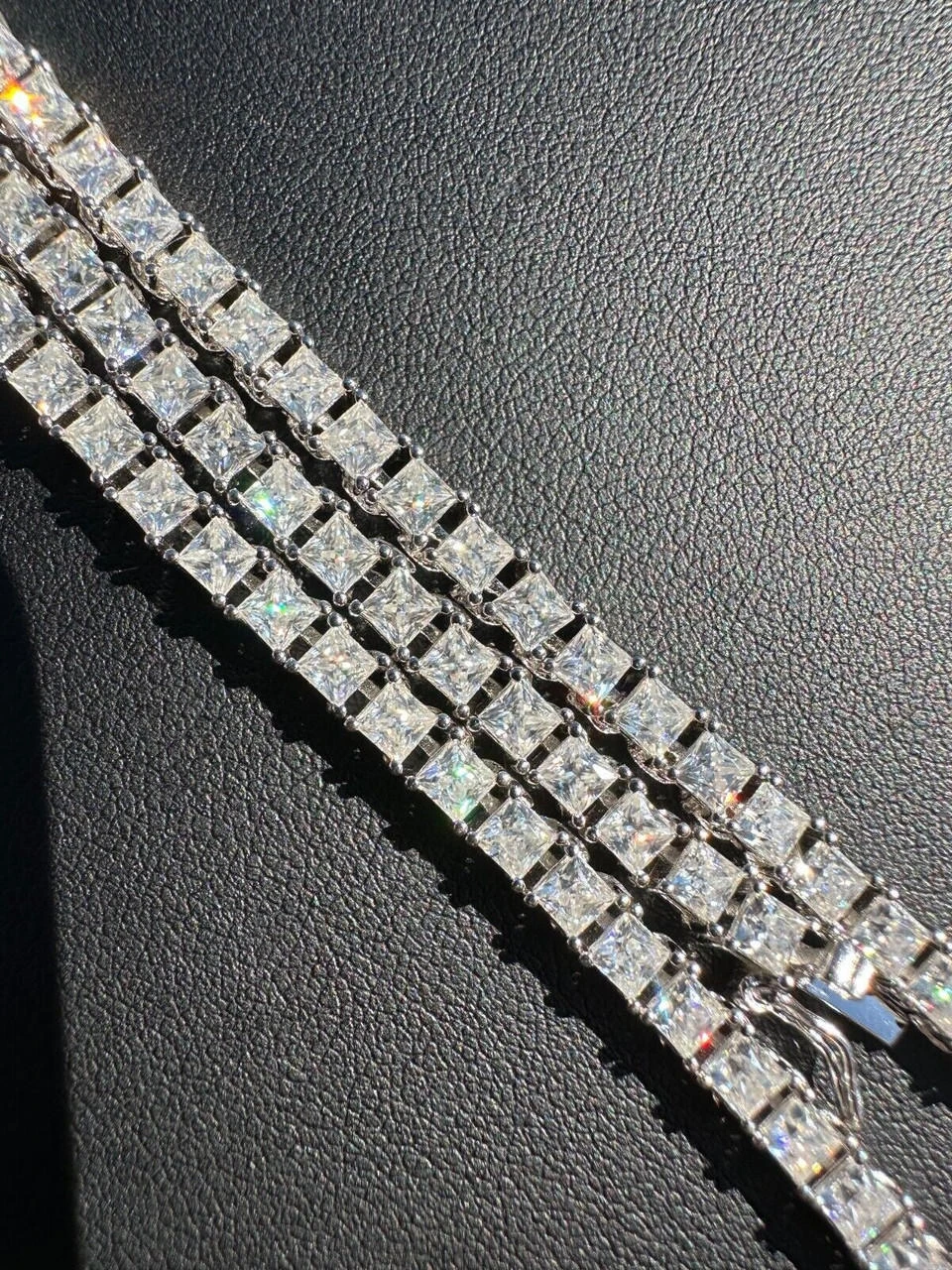 Gorgeous men’s or ladies MOISSANITE princess cut tennis chains. Princess cut is a square cut of stone.
