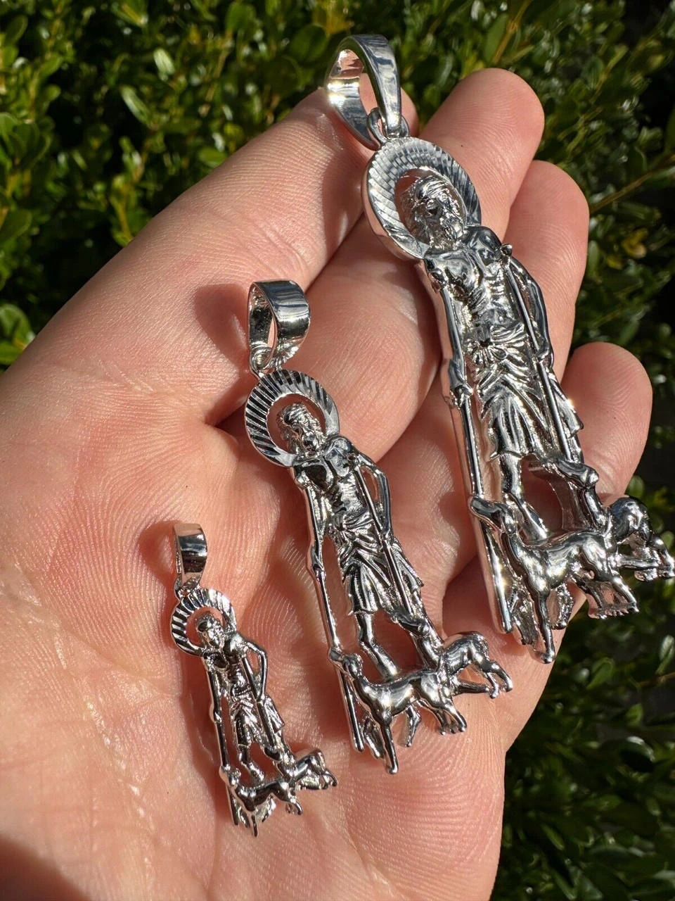 Very detailed from the face to the dogs on the bottom. Diamond cut halo finish for an icy look without stones