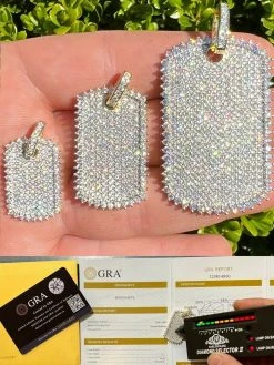 Gorgeous hip hop moissanite dog tag pendant…3 sizes available…you are sure to stand out with this piece!!