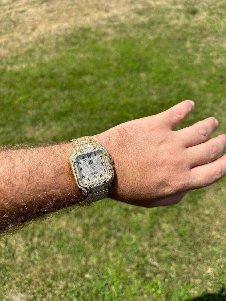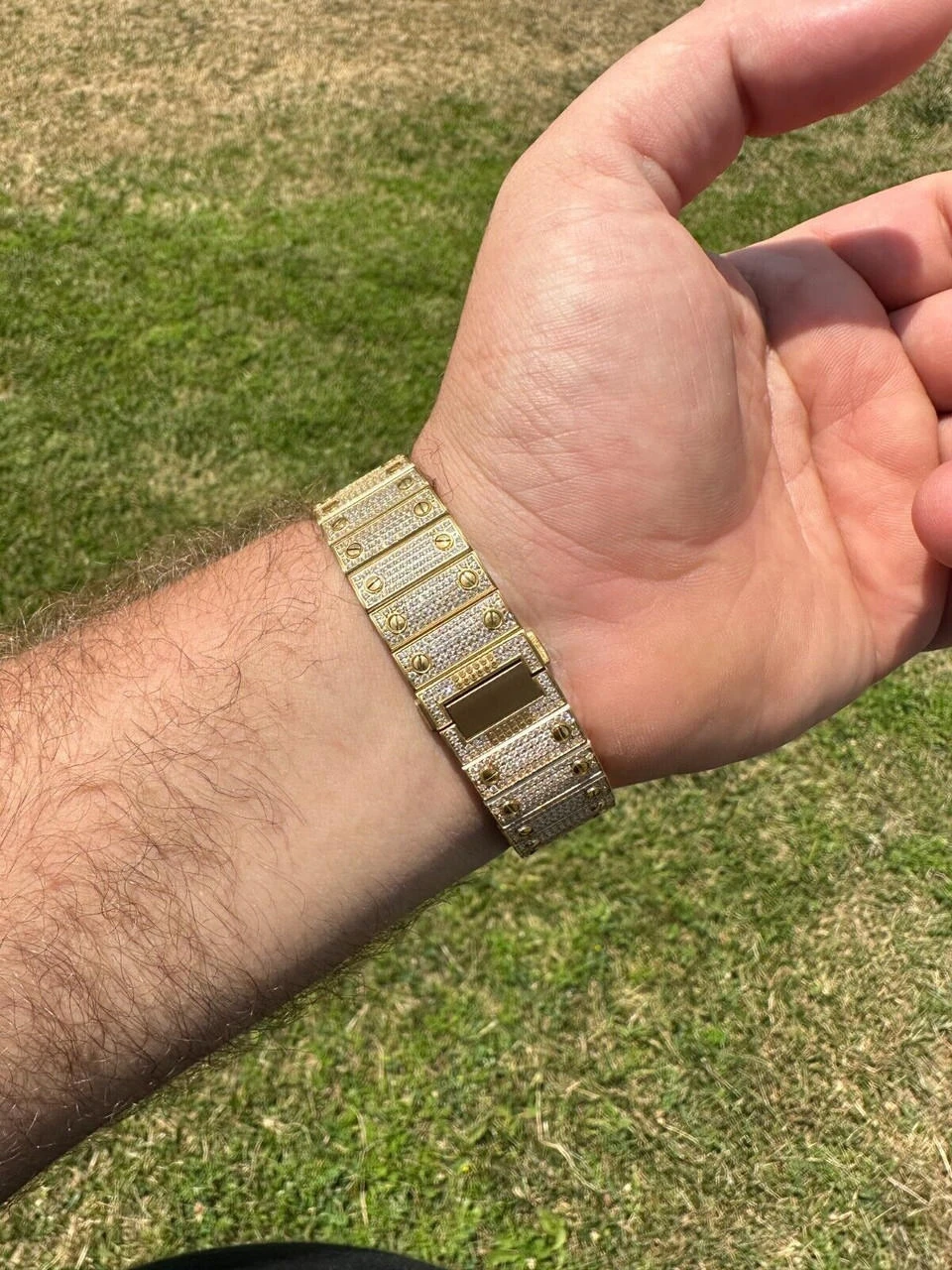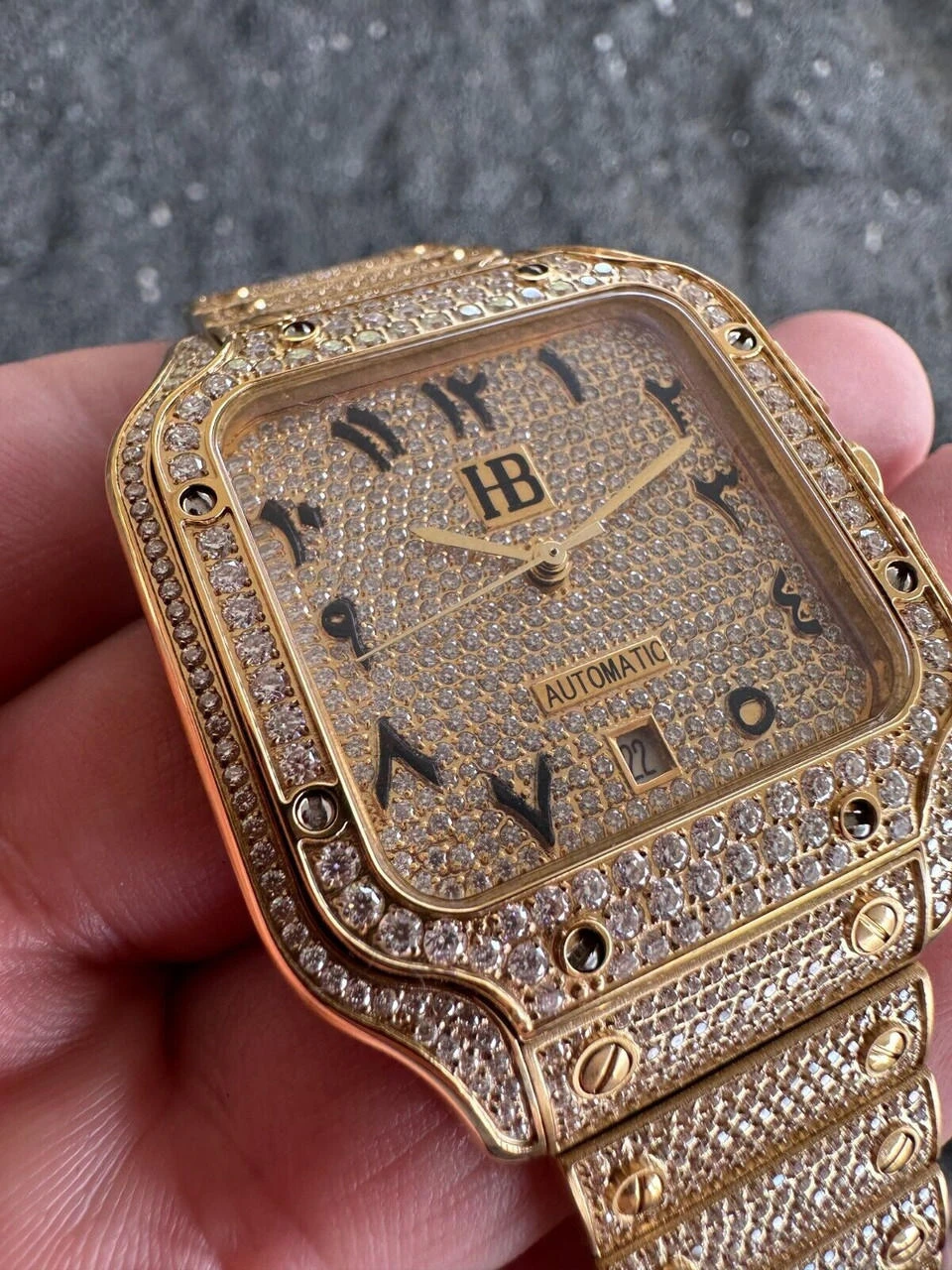 Real MOISSANITE Hip Hop Watch Fully Iced Mens Automatic Movement Gold Arabic
