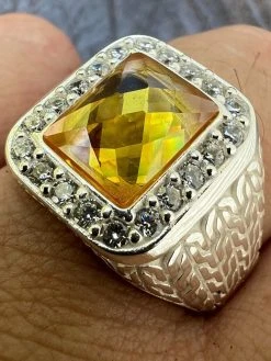 Mens Real 925 Sterling Silver Iced Simulated Yellow Canary Diamond Hip Hop Ring