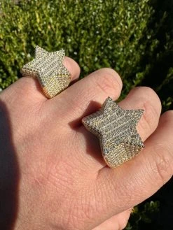 Real Iced Baguette 3D Star Ring Hip Hop Ice Out 14k Gold Plated 925 Silver 6-13