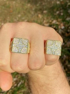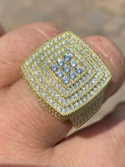 Large Real Solid 925 Sterling Silver 14k Gold Mens Diamond Ring Hip Hop Iced