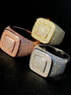 Solid 925 Silver Men’s Hip Hop Rapper Big Diamond Pinky RING 14k Gold ICY CUSTOM