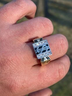 Solid Real 925 Sterling Silver & 14k Gold Iced Black Diamond Baguette Pinky Ring