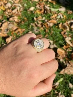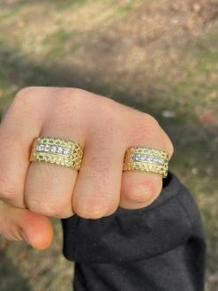 Men’s 14k Gold & Solid 925 Sterling Silver Ring ICY Round Cluster Hip Hop Pinky