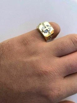 Mens 14k Gold Over Real Solid 925 Silver Cross Ring Size Pinky 7 8 9 10 11 12 13