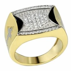 Mens Bling Gold Vermeil Over Solid 925 Silver Two Tone Cross Iced CZ Ring Drip