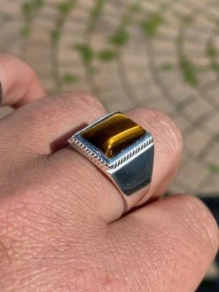 Real Mens Solid 925 Sterling Silver Tiger’s Eye Signet Ring Sz 7 8 9 10 11 12 13