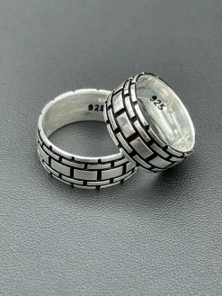 Mens Plain Ring Real 925 Sterling Silver & Black Oxidized Wedding Band Greek Key