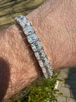 60ct Emerald Cut MOISSANITE 8mm Tennis Bracelet 925 Silver Pass Diamond Tester