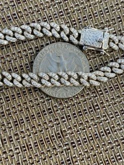 6mm Miami Cuban Iced Solid Silver Chain Necklace 16″-30″ MOISSANITE Mens Ladies