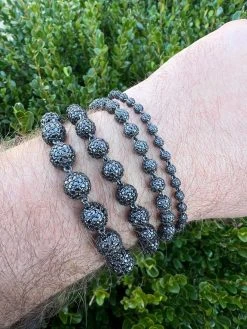 Black Moissanite Disco Ball Bracelet 4-10mm – Black Rhodium Over 925 Silver – Shambala Style