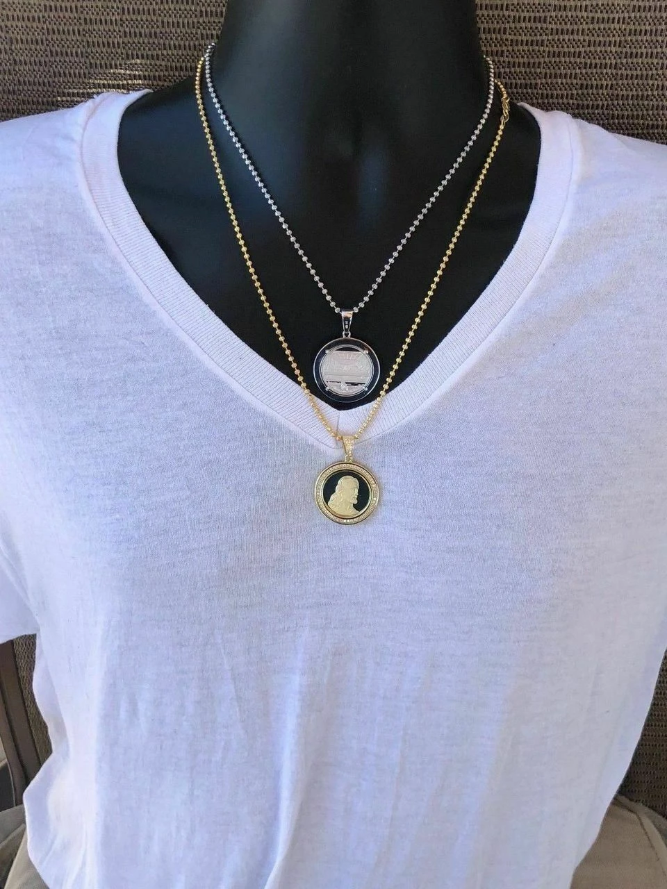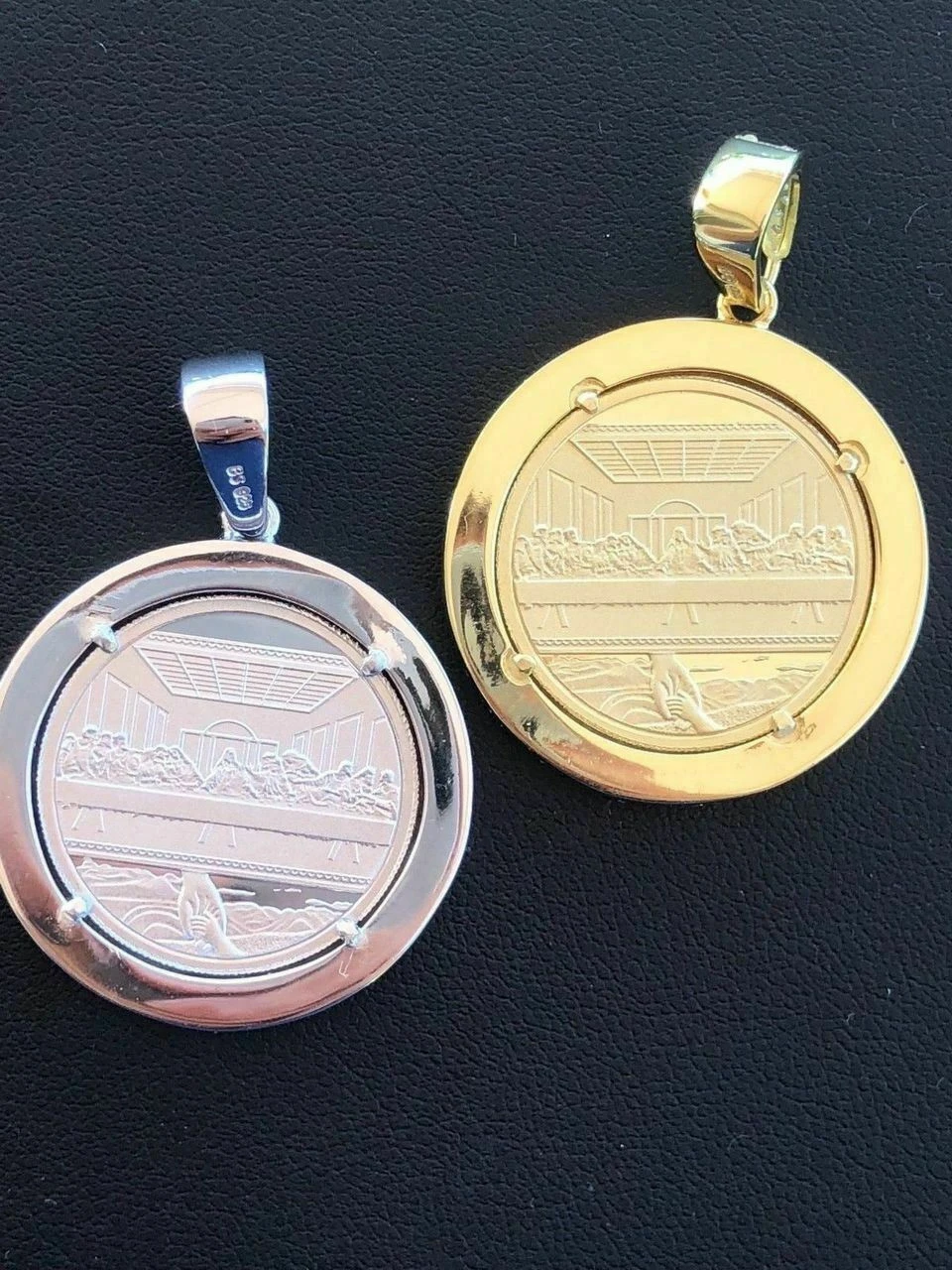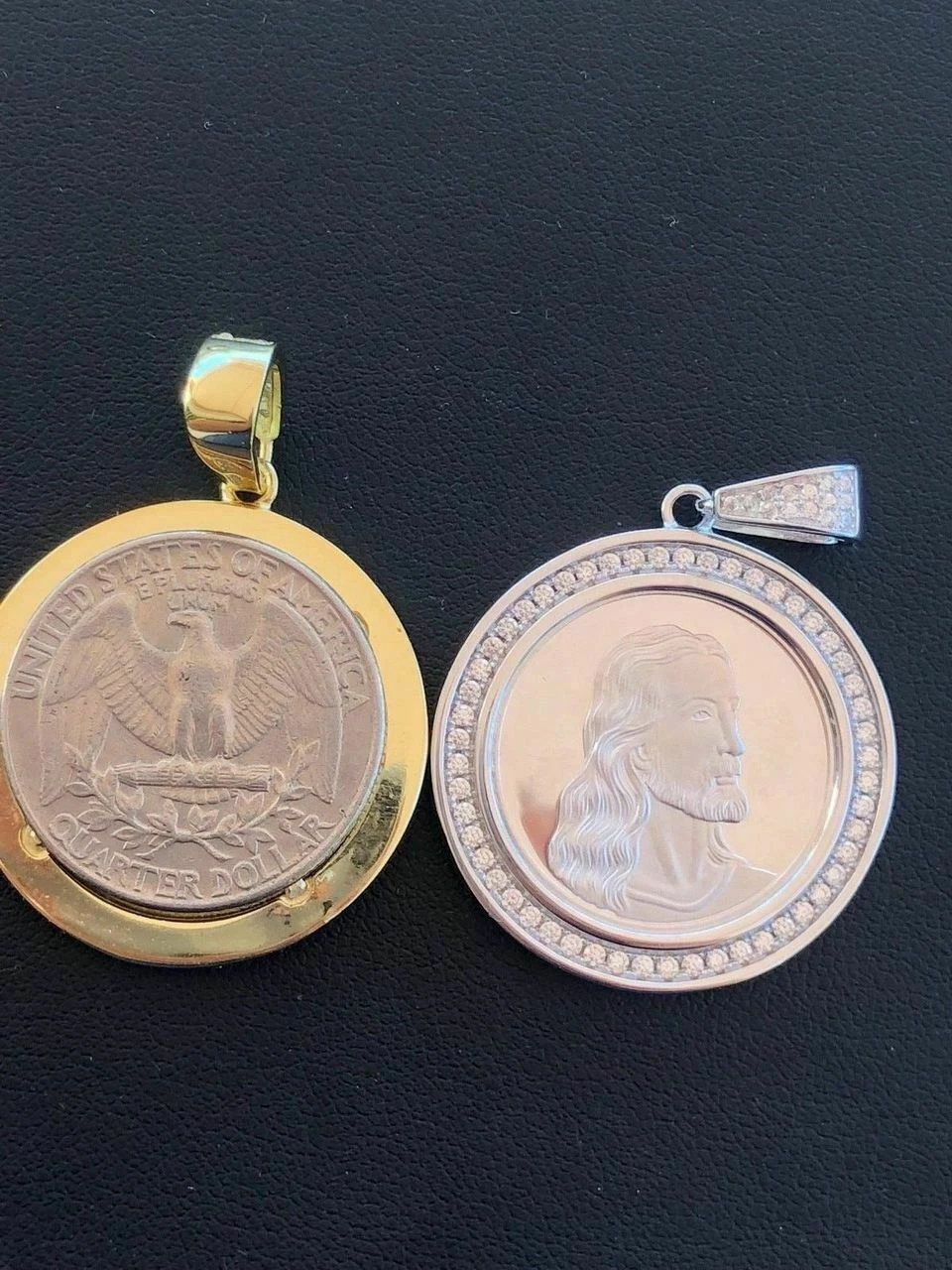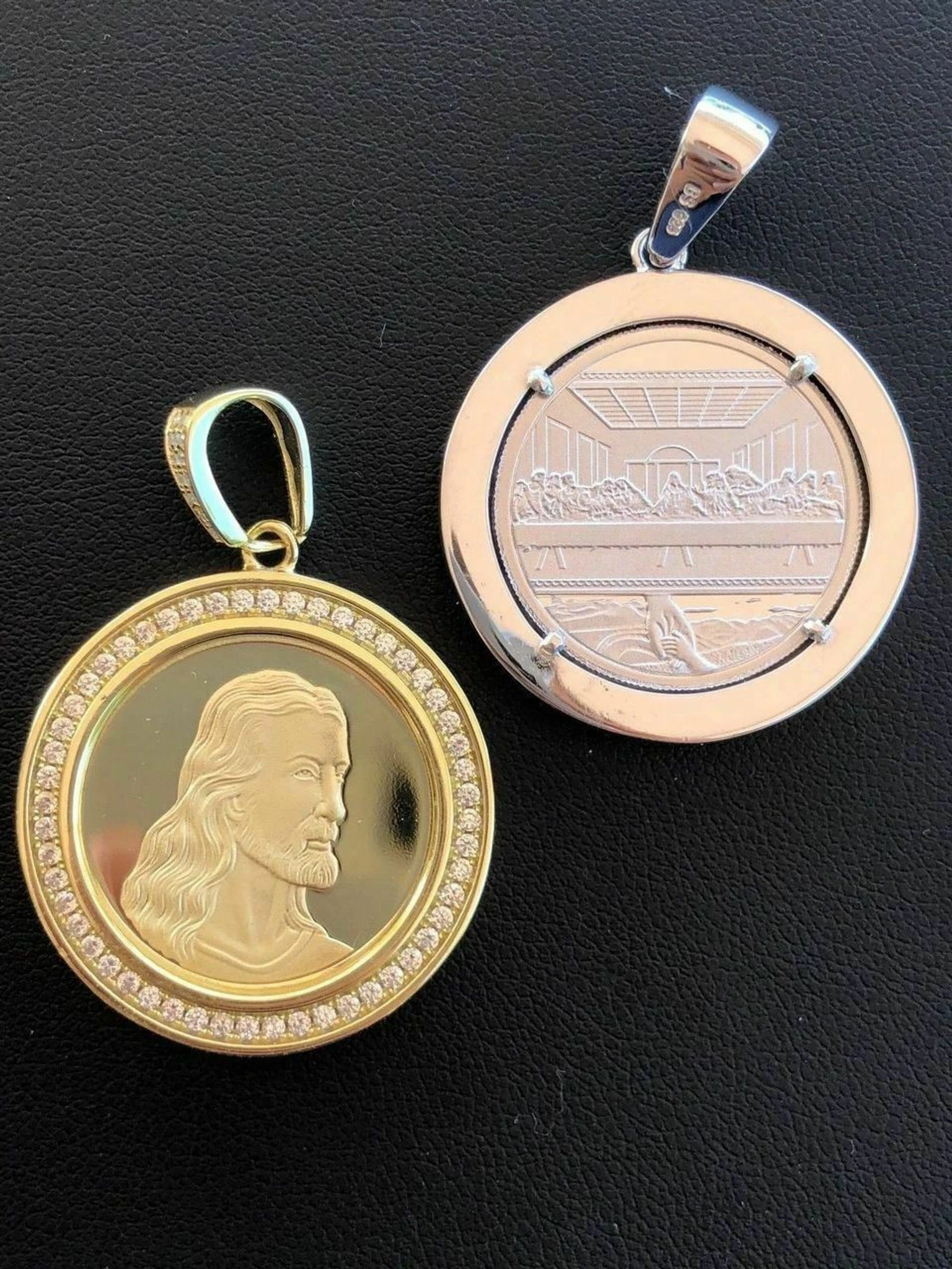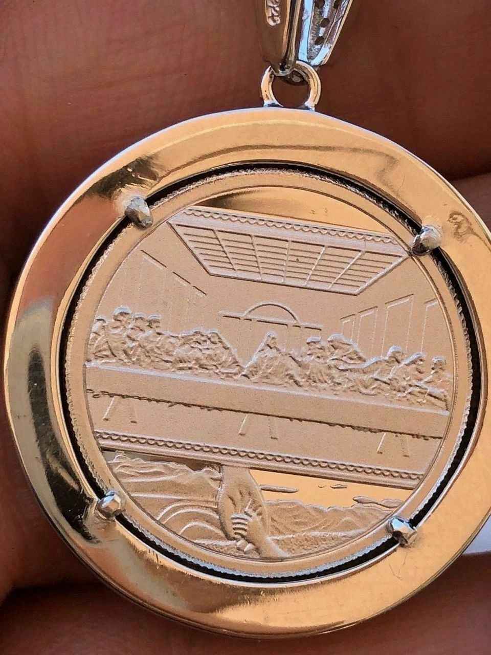 Gorgeous unique reversible coin Jesus head and last supper pendant