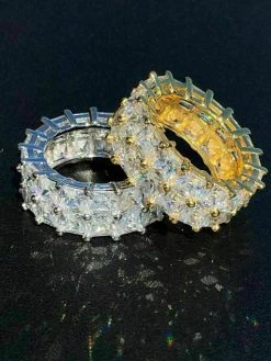 Tennis Ring 14k Gold & Solid 925 Silver Princess Cut Diamond Pinky Wedding Band